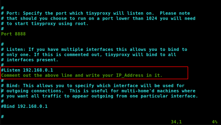 Чтобы внести изменения в файл конфигурации Tinyproxy, откройте его с помощью vim.