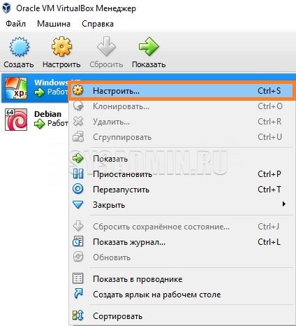 1. Открываем главное окно программы VirtualBox, и нажимаем правой кнопкой на нужной виртуальной машине. В появившемся меню выбираем пункт «Свойства«.