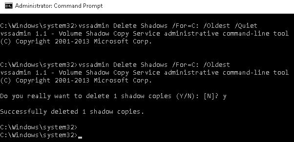 vssadmin Delete Shadows /For=C: /Oldest [/Quiet]