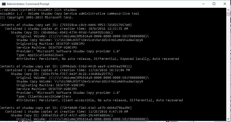 Contained 1 shadow copies at creation time: 28-Nov-16 23:00:19