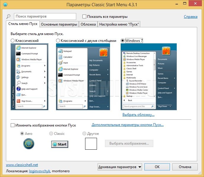После установки программы, по нажатию на кнопку меню «Пуск», появится окно настроек, предлагающее выбрать стиль оформления меню.