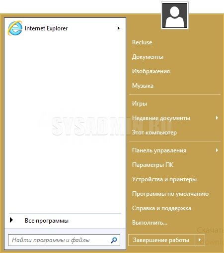 В итоге, при выборе стиля предлагаемого по умолчанию (Windows 7), меню «Пуск» примет следующий вид: