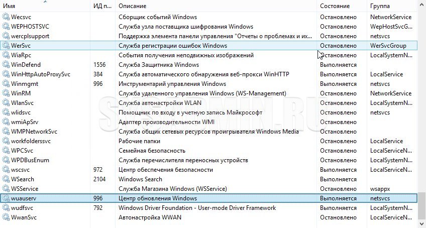 dism.exe /Online /Cleanup-image /RestoreHealth - Открываем Диспетчер задач, переходим на вкладку «Службы», и ищем там «wuauserv» (Центр обновления Windows). Нажимаем на нем правой кнопкой и останавливаем его.