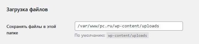wp-content/uploads. У пользователя, под которым запущен интернет-сервер (обычно это пользователь www-data), должен быть доступ на чтение и изменение этой директории. - В настройках WordPress выставлен неверный путь до директории для загрузок. Провести проверку, и по мере необходимости поправить его, можно перейдя в панели управления WordPress в пункт опций «Опции» — «Медиафайлы». Тут будет параметр под заглавием «Загрузка файлов», в каком по дефлоту должен быть указан путь