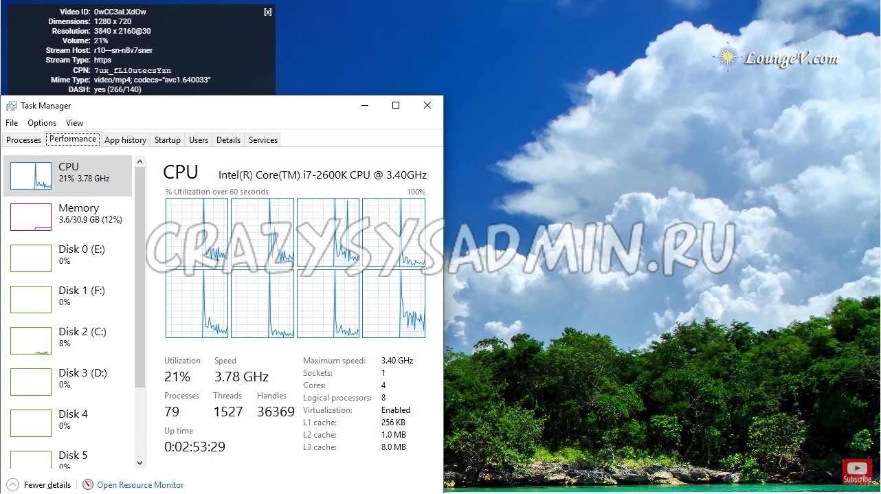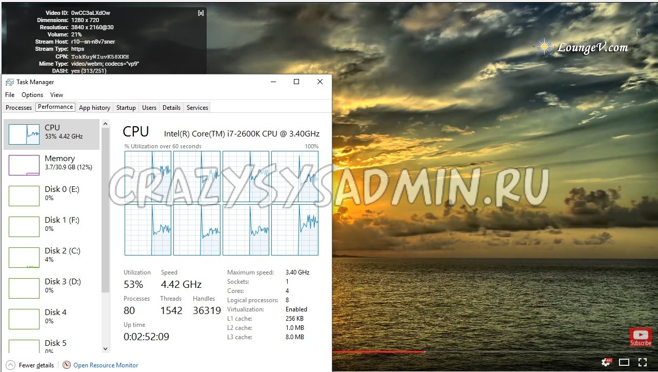 Нагрузка на процессор при воспроизведении ролика в кодеке VP9